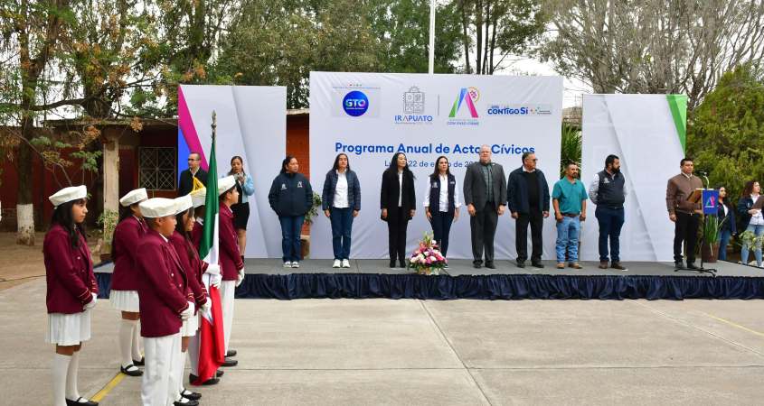 La primaria Vasco de Quiroga, en la comunidad San José de Jorge López, fue la primera sede del Programa Anual de Actos Cívicos que impulsa el Gobierno de Irapuato, para fomentar los valores, principios y el amor por nuestro país.
