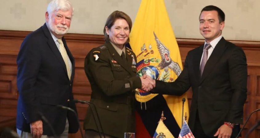 “Tenemos varias cosas que hemos hecho muy recientemente con Ecuador. Por ejemplo, la Hoja de Ruta de Asistencia de Seguridad, llamada ESAR, con Ecuador. Y solo hay otro país en la región con el que tenemos firmada esta hoja de ruta. Eso implica un plan de cinco años, establece la hoja de ruta para la cooperación en materia de seguridad que haremos. Hemos creado un grupo de trabajo de defensa bilateral y así hacemos intercambios entre el Pentágono y Ecuador”, dijo la comandante Richardson al medio ecuatoriano Primicias.