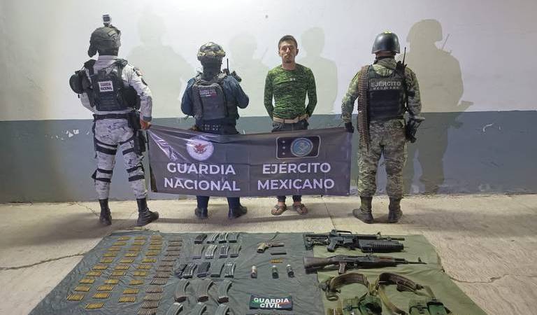 El sujeto, de 33 años de edad, fue aprehendido por elementos del Ejército Mexicano y la Guardia Civil Estatal en pleno centro de cabecera municipal y puesto a disposición del ministerio público federal en Apatzingán.