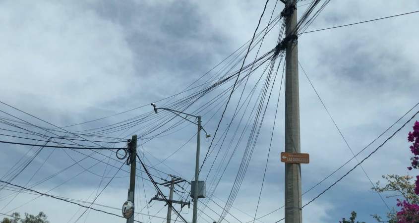 Explicó que las “telarañas” de cables que penden entre los postes, son responsabilidad de las empresas que brindan los servicios de internet, televisión de paga y telefonía fija.