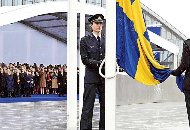 La bandera de Suecia fue izada ayer en la sede de la Organización del Tratado del Atlántico Norte (OTAN), en una ceremonia que formalizó la adhesión de ese país como 32º Estado miembro.