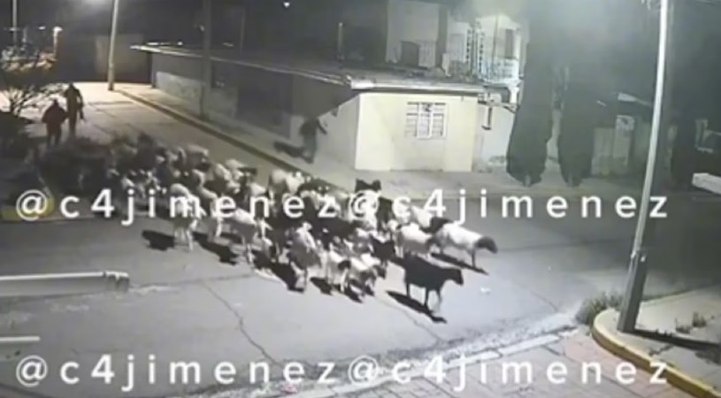 Por medio de redes sociales se dieron a conocer imágenes en las que se ve a tres hombres robando a decenas de borregos, en el Estado de México (Edomex). En imágenes difundidas por el periodista de nota roja Carlos Jiménez, puede verse el momento exacto en el que los tres hombres se llevan a los borregos.