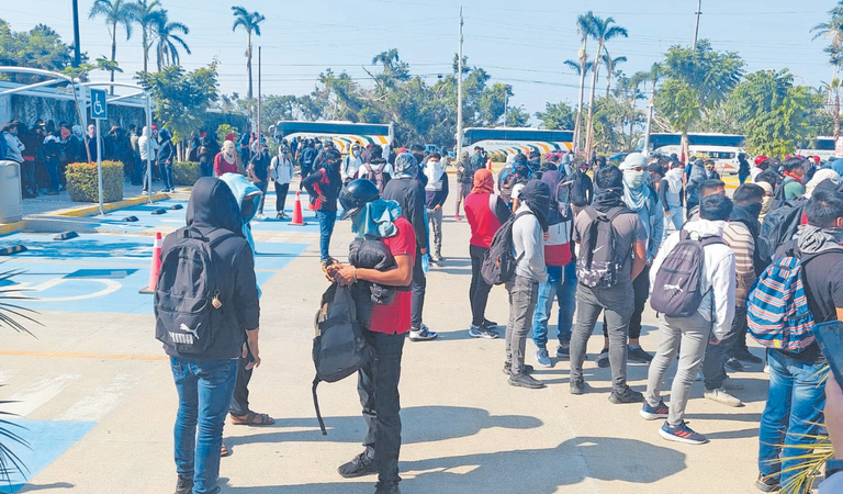 Normalistas de Ayotzinapa llegaron en seis camiones al palacio federal en Acapulco, para manifestarse por la muerte de su compañero. Empleados de dependencias municipales, estatales y federales evacuaron sus oficinas ante el temor de quedar atrapados en los actos vandálicos de los estudiantes.