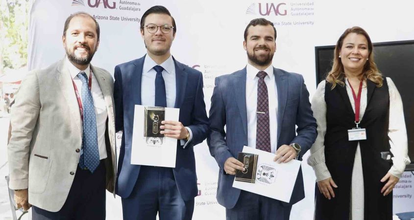 Alumnos de la carrera de Derecho de la Universidad Autónoma de Guadalajara (UAG) asistieron a la conferencia “La importancia de la Colegiación”, en formato “outdoor class”, impartida por los abogados Alejandro Casillas Jiménez Romo y Jacques Hasson Hervella, miembros de La Barra Mexicana, Colegio de Abogados (BMA), Capítulo Jalisco.