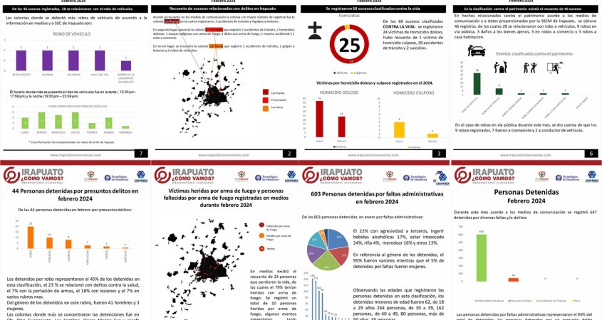 Durante febrero del 2024 con base en datos de la SSC de Irapuato hubo 647 detenidos.