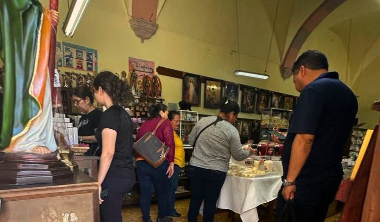“La mayoría viene a comparar cirios y dependiendo de su presupuesto es el tamaño del mismo, también se llevan devocionarios de la Preciosa Sangre de Cristo, de la Pasión del Señor y los Siete Dolores de la Virgen María. Se llevan imágenes de Cristo Crucificado, cuadros de la Virgen María, de la Santísima Trinidad y rosarios”.