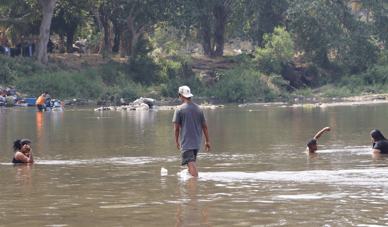 El venezolano José Suárez, quien ha resentido la ola de calor, relató que pese a la sequía “no es nada fácil” cruzar el Suchiate, donde además temen porque el agua está contaminada .