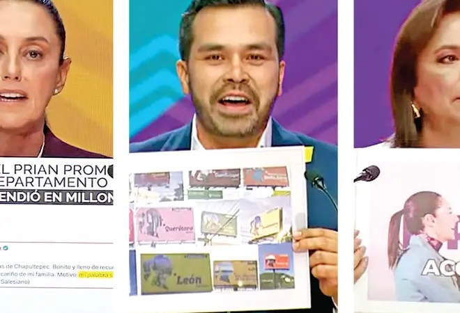 Un debate en el que fueron pocas las propuestas y diversos los golpes verbales que, nuevamente, incluyeron gráficos y fotografías que, otra vez, fueron colocados mal, como ocurrió con Xóchitl Gálvez, que mostró el Escudo Nacional y una gráfica de cabeza sobre la Línea 12 del Metro de la Ciudad de México y Jorge Álvarez Máynez, que enseñó una noticia en horizontal.