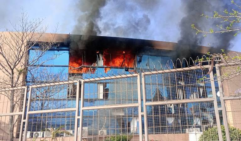 Los estudiantes llegaron en varios autobuses y descendieron para dirigirse al edificio Tierra Caliente donde calcinaron diversos objetos.