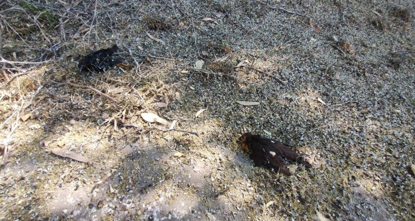 En un tramo de unos 30 metros, Correo pudo localizar una decena de tordos pecho amarilla y por lo menos un pájaro negro, sin vida.