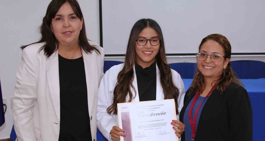 En el evento, la Dra. Beatriz Tinoco Torres, Decana de Medicina, expresó un mensaje en el que felicitó a la alumna y aseguró que estos exámenes ayudan a medir la calidad de la institución, lo que obliga a la UAG a vivir un proceso de mejora continua.