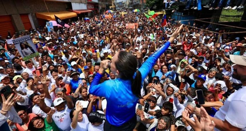 La líder opositora María Corina Machado logró este viernes una multitudinaria convocatoria en Turén, estado de Portuguesa, a donde llegó como parte de la gira de dos días que encabeza en Venezuela. La ex diputada, que también estuvo en Ospino y Píritu, colapsó las calles de la ciudad -un antiguo bastión chavista donde el oficialismo solía vencer con un 70% de los votos- con los cientos de seguidores que se acercaron para demostrarle su apoyo -incluso sabiendo que quedó formalmente fuera de la carrera presidencial- y su voluntad de un cambio en el país.