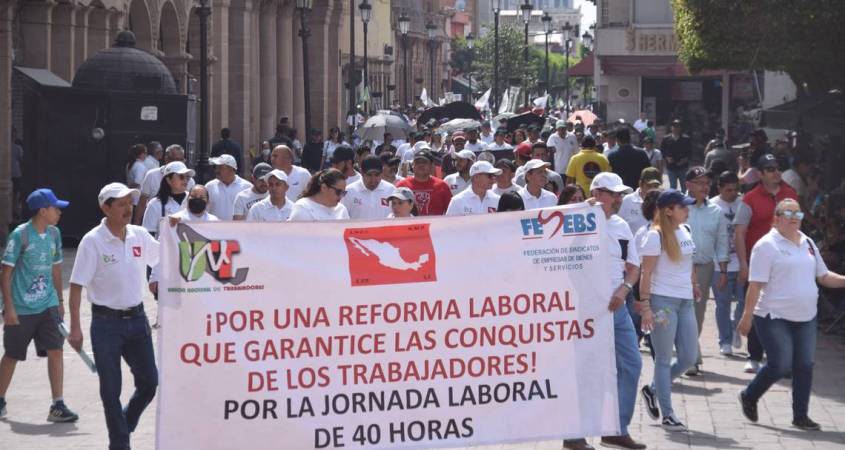 Estas fueron parte de las consignas en la marcha del Día del Trabajo en la que participaron el Sindicato de Telefonistas, el Sindicato de Trabajadores de la UNAM, el Sindicato del Monte de Piedad y el Frente Auténtico del Trabajo.