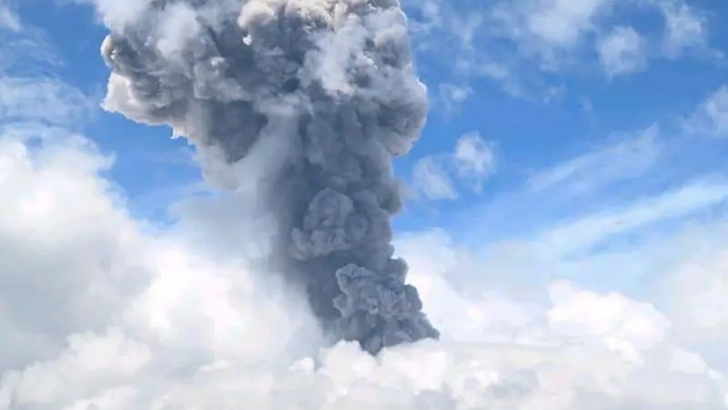 Según la agencia de vulcanología indonesia PVMGB, la columna se alza a 1.5 km por encima del cráter.