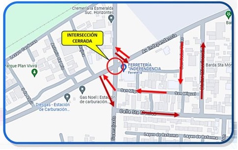 La intersección vial de avenida Independencia con avenida Gabriel García Márquez y calle Guanajuato, estará cerrada de manera temporal.