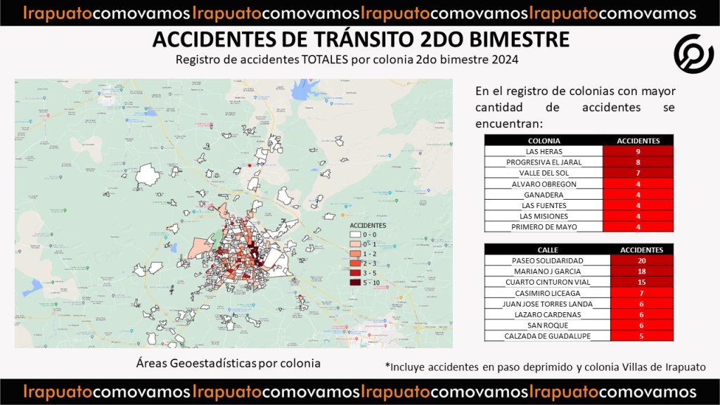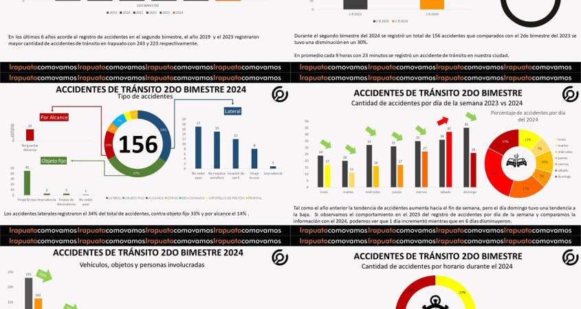 El Observatorio ciudadano Irapuato ¿Cómo vamos?, presenta el Reporte de accidentes de tránsito del 2do bimestre del 2024.