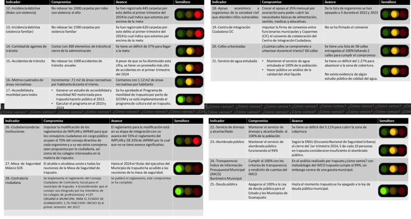 El observatorio ciudadano Irapuato ¿cómo vamos? da seguimiento trimestral a los compromisos firmados para el periodo 2021-2024 en las 4 áreas de observación: