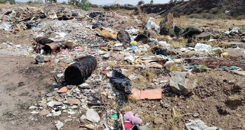 Sin recato alguno, llegan en camionetas y tiran la basura en el acotamiento de la carretera federal 43, tramo Salamanca-Valle de Santiago, a un costado del acceso a la comunidad de La Tinaja.