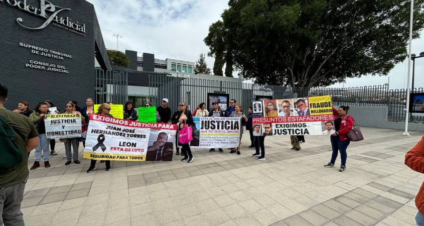 Con la exigencia de que se agilice el proceso, personas que fueron defraudadas por el despacho Punto Legal por casas que pagaron y nunca les entregaron, protestaron afuera de las instalaciones del Poder Judicial.