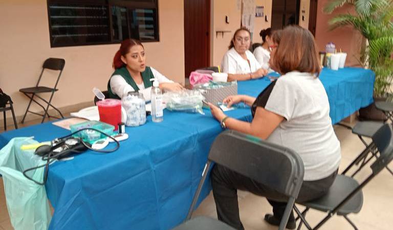 “Una vez por año, un módulo del IMSS se instala en el patio de la Presidencia Municipal, y en este caso, jueves y viernes se da el servicio para checar peso, talla, toma de presión, glucosa, y para las mujeres, papanicolaou y exploración de pecho, en una oficina exclusiva”, explicó una de las encargadas del programa del IMSS.