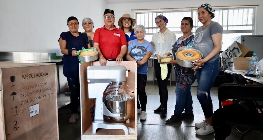 Equipamiento para beneficiar a ciudadanos que toman el taller de Repostería en el Centro de Desarrollo Comunitario (Cedecom) ubicado en la colonia de Purísima del Jardín entregaron autoridades del Gobierno Municipal.
