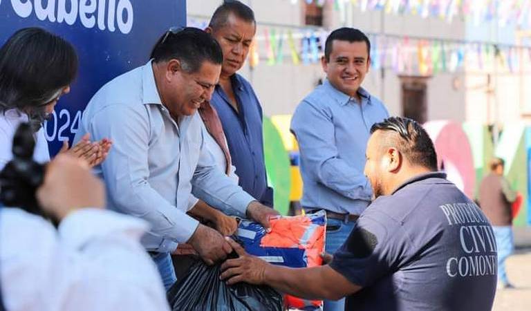 Para Protección Civil se entregaron 32 playeras tipo polo, 32 chamarras by-tono, 60 pantalones tácticos, 32 camisas, 32 pares de botas tácticas y 32 overoles tácticos.