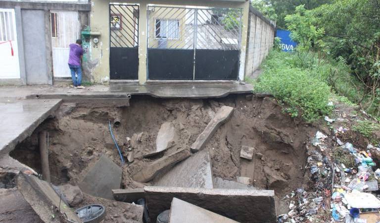 Las intensas lluvias en el municipio de Veracruz dieron como resultado dos socavones en el fraccionamiento La Herradura y la suspensión de algunas líneas del transporte de la zona norte al centro de la ciudad. socavon