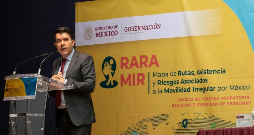 El subsecretario de Derechos Humanos, Población y Migración de la Secretaría de la Segob, Arturo Medina Padilla, encabezó la presentación el tablero Mapa de Rutas, Asistencia y Riesgos Asociados a la Movilidad Irregular por México (RARAMIR), una herramienta que proporciona mapas de geolocalización y presenta información de la dinámica de los flujos en movilidad irregular, la cual puede ser consultada por sexo, nacionalidad y edad, entre otros.