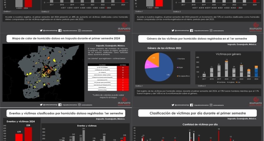El reporte semestral de víctimas por homicidio doloso del Observatorio Ciudadano Irapuato ¿Cómo Vamos? presenta la información condensada del registro de víctimas y eventos acontecidos en el municipio de Irapuato, Guanajuato.