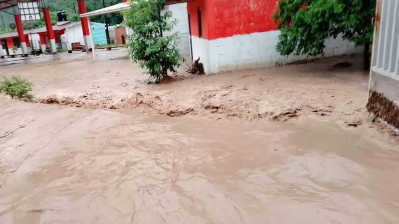 En Xochiatipan, la tarde del domingo se reportó el desbordamiento de un arroyo localizado en la comunidad de El Zapote, el cual anegó un número aún no determinado de domicilios e incluso las instalaciones de la primaria de la comunidad.