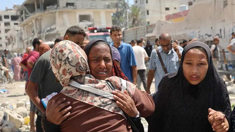 Al menos siete personas, incluyendo dos niños, murieron en un bombardeo israelí de una escuela de Gaza que alberga miles de desplazados, anunció el martes la Defensa Civil del territorio palestino.