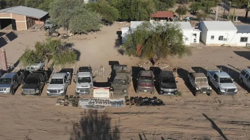 En el operativo se aseguró un vehículo tipo monstruo, 13 vehículos de distintas marcas y modelos, 20 armas de fuego largas y un arma de fuego corta, municiones, chalecos antibalas, cargadores, y equipo táctico diverso.
