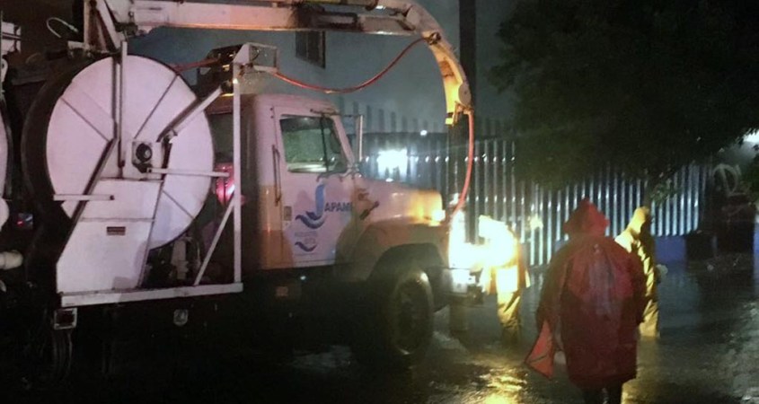 El equipo de Operación y Mantenimiento de la Japami, con el apoyo de un camión hidroneumático y bombas charqueras, trabajó en los puntos afectados, logrando liberar las vialidades en un promedio de cuatro horas, además de reportar el correcto funcionamiento de los cárcamos al 100%.