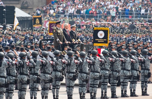 “Somos pueblo uniformado”, evocó al primer mandatario el general Luis Cresencio Sandoval, secretario de la Defensa Nacional, en su discurso ante el Zócalo de la Ciudad de México. Su homólogo de la Secretaría de Marina, el almirante José Ojeda, también citó a López Obrador al recalcar que “amor con amor se paga”.
