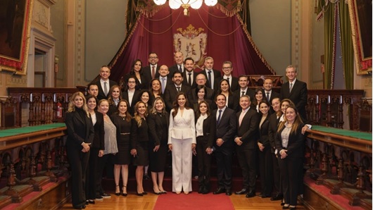 A siete días de que tome protesta, la gobernadora electa, Libia Denisse García Muñoz Ledo, presentó a los integrantes de su gabinete legal y ampliado en el Palacio de los Poderes en la capital del estado.