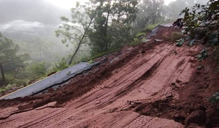 Los caminos que comunican los 20 municipios de esta región de La Montaña en Guerrero están cortados y cerrados de escombro de los cerros que se desgajaron ante las fuertes lluvias que se han registrado por el huracán John.