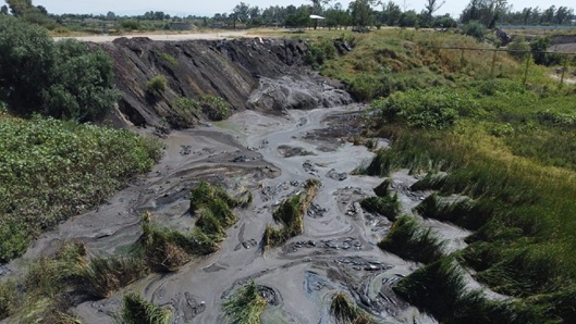 En el centro del sitio se localiza un pequeño cuerpo de agua, al parecer con agentes químicos de carácter orgánico, con aromas que podrían considerarse relacionados con la presencia de compuestos hidrocarbonados.