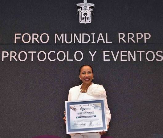 La Señora Nedelka Escala, y otras personalidades del gremio, recibieron el reconocimiento en el cierre del “2do Foro Mundial de Relaciones Públicas, Protocolo y Eventos”, organizado por la Academia de Relaciones Públicas y Protocolo, la sede fue en el Centro Universitario de Ciencias Económico Administrativas (CUCEA), de la Universidad de Guadalajara (UdeG).