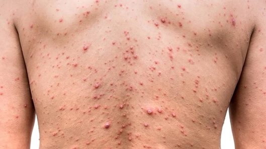 La mayoría de los pacientes hospitalizados mostraron una erupción cutánea pustulosa generalizada, y el 20% presentó erupciones genitales. Además, la mitad de los pacientes reportó fiebre, y más de un tercio tenía los ganglios linfáticos inflamados. También se registraron casos de dolores musculares y dos informes de pérdida de visión.