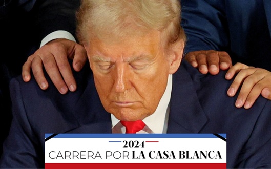 Todos de pie con los ojos cerrados, algunos con el brazo en alto apuntando a Trump, o una mano sobre el hombro del expresidente, recitaron oraciones para pedir a Dios se sea el próximo presidente y “restaure los valores bíblicos”.