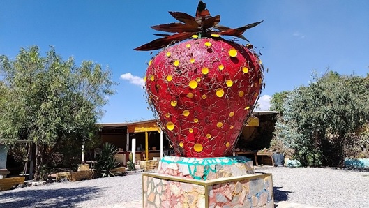El monumento está ubicado en el Museo de la Fresa, localizado en el Rancho La Cumbre, donde desde hace más de un año la familia Ramírez Ramblas tomó la decisión de construir, con materiales sustentables, un espacio de enseñanza para promover la identidad irapuatense a través de la fresa.