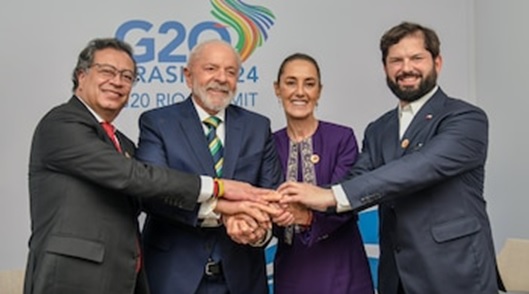 Durante la Cumbre, la mandataria también sostuvo un encuentro con los líderes progresistas de América Latina, Brasil y Chile; así como con los miembros del grupo MIKTA, conformado por sus homólogos de Indonesia, Prabowo Subianto; República de Corea, Yoon Suk Yeol; Türkiye, Recep Tayyip Erdoğan; y Australia, Anthony Albanese, quienes agradecieron a México por su exitosa presidencia del MIKTA en 2024.