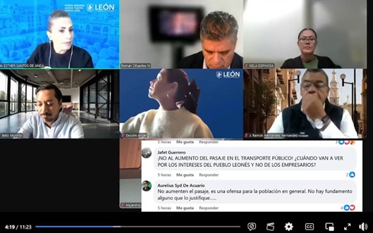 Otro usuario de nombre Rosario Calvillo manifestó lo siguiente: “No tiene justificación el aumento, no hay unidades suficientes, los periodos de espera son excesivos, los conductores manejan horrible, con música a decibeles altísimos. Las rutas están mal planeadas. Nunca han cumplido los acuerdos”, publicó durante la sesión.