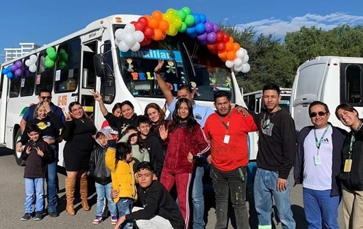 Hacer felices a los pequeñines es la intención de este grupo de amigos, quienes emprenden un recorrido en una unidad de transporte público que es conducida por Adrián Guadián.