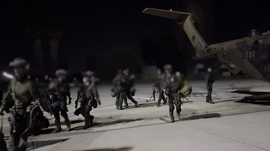 Las imágenes de la incursión, también divulgadas por las FDI este jueves, mostraban a soldados subiendo a helicópteros en una base y aterrizando posteriormente en el objetivo dentro de Siria. Se puede ver a las tropas entrando en el recinto mientras resuenan disparos de fondo. Imágenes granuladas muestran después a los soldados regresando a su base.