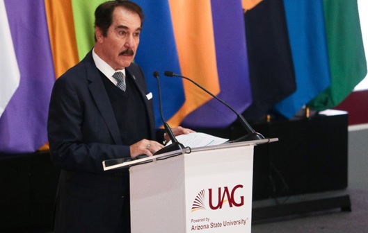 El Rector de la UAG, Lic. Antonio Leaño Reyes, destacó que la institución trabaja en 12 líneas estratégicas, basadas en tres grandes ejes: posicionamiento, crecimiento y efectividad.