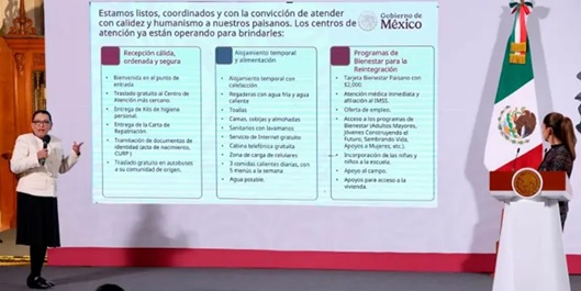 En este sentido, la funcionaria refirió que los centros de atención para recibir a los migrantes deportados de Estados Unidos tras el decreto del presidente Donald Trump, se encuentran vacíos, sin embargo, dejó en claro que las instituciones están listas para brindar apoyo a los connacionales.