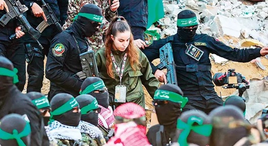 Antes de ser liberada, se le mostró en un escenario junto a miembros de Hamás armados y enmascarados, mientras portaba en las manos un diploma y se le pedía que saludara a los espectadores.