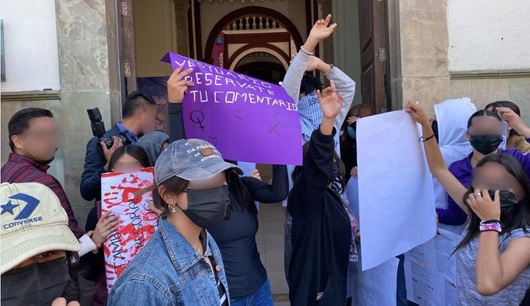 Estudiantes de la Escuela de Nivel Medio Superior (ENMS) de Silao protestaron en la Presidencia Municipal para exigir el cese a la violencia sexual de profesores contra el alumnado.