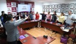 Afuera fueron recibidos por la regidora Anel Torres y luego por la alcaldesa Melanie Murillo Chávez, quien solicitó una comitiva para atenderlos.